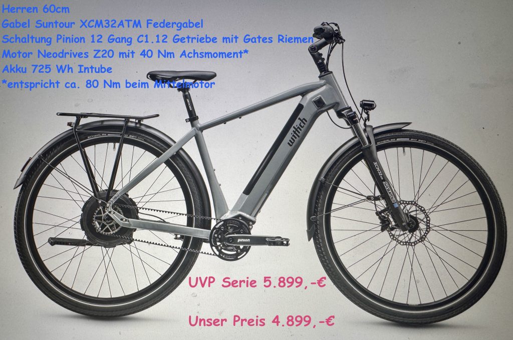 Das Serienrad „Albin“ von dem Hersteller Wittich, hat einen getriebelosen Neodrives Heckmotor mit 40 Nm, gepaart mit einem 12 Gang Pinion Getriebe läuft das Wittich Rad wie auf Schienen.